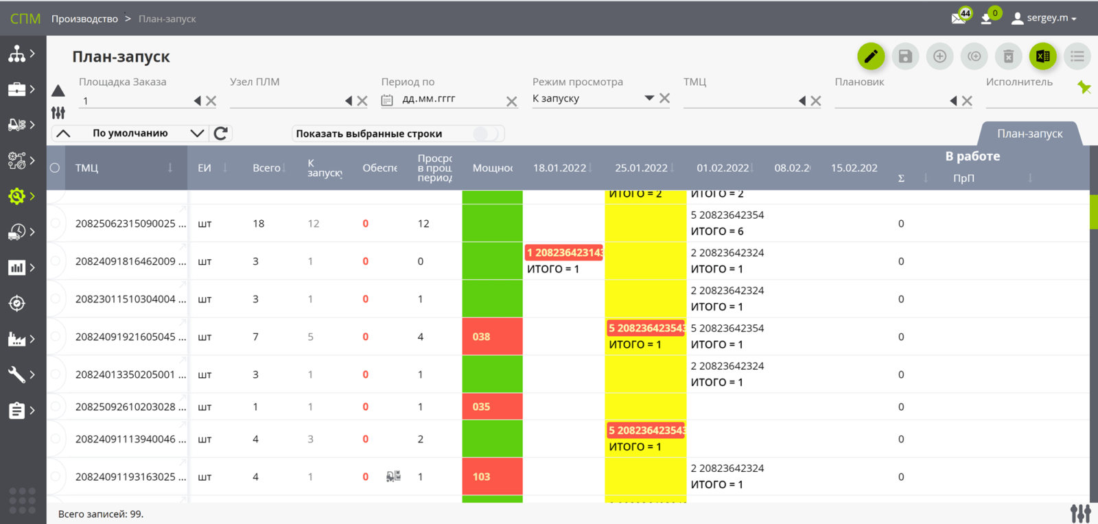 - Автоматическое / ручное формирование плана выпуска на основании заказов, прогноза, по различным алгоритмам. В т. ч. на сборки в глубине состава изделия (честная реализация «Сборка-под-заказ»). С разбивкой / консолидацией заказов «по выпускам».